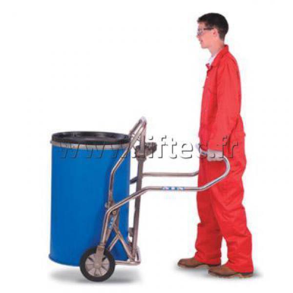 Pour la manutention, le chariot manuel porte-fût ergonomique DTC01 supporte des charges de 300 kg pour un effort inférieur à 20 kg. La structure des chariots porte fût ergonomique est entièrement en inox. Une version ATEX de ces chariots ergonomiques pour fût ergonomique est disponible.