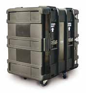 ROTO SHOCKS est un coffret 19" à coque polyéthylène rotomoulé, extrêmement robuste. Il répond aux normes les plus strictes de transport civil et militaire. Les conteneurs ROTO SHOCKS sont gerbables entre eux grâce à des plots moulés. Ils laissent la possibilité d'ouvrir les capots même si les conteneneurs sont empilés.