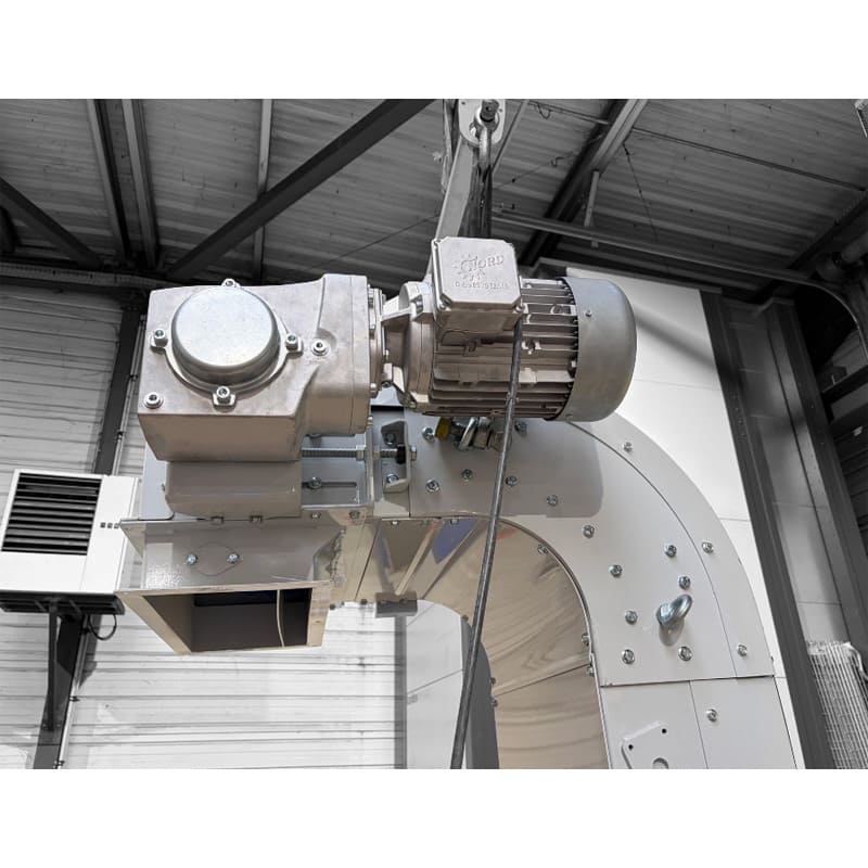 Placé en sortie d’un refroidisseur à pellets, il assure la récupération de granulés de bois de diamètre 6 x 40 mm à environ 90 °C, puis leur distribution vers un second convoyeur.
