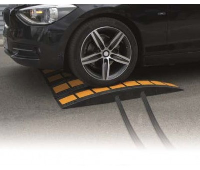 Ce ralentisseur avec passage de câble est pourvu de large bandes réfléchissantes et antidérapantes classe 1 et sera livré avec des H de liaison afin de lier les ralentisseurs entre eux et solidifier l’installation.