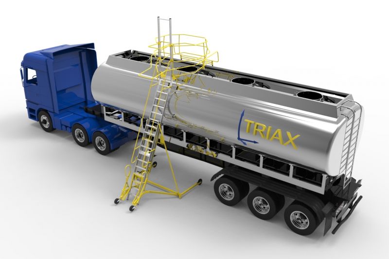 Echelles mobiles adaptées au travail sur le dôme de citernes ou citernes et conteneurs. L'échelle mobile TRIAX permet l'accès et l'intervention sur les dômes des citernes en toute sécurité.