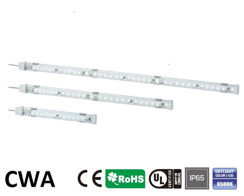Les barrettes d'éclairage linéaire à LED IP65, série CWA sont une parfaite alternative aux sources lumineuses classiques pour les machines et installations industrielles : coffrets électriques, armoires de commande, machines de production sans contraintes spécifiques, etc.