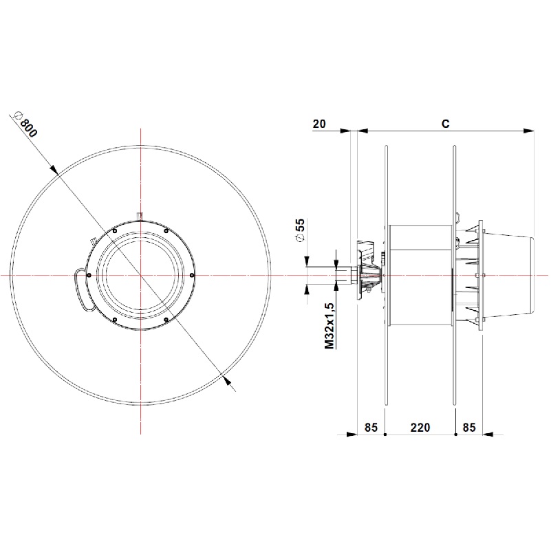 Son diamètre 800 mm est conçu pour les grandes longueurs de câbles de 4 à 25 conducteurs, de 2,5 mm² à 25 mm² jusqu'à 50 mètres.