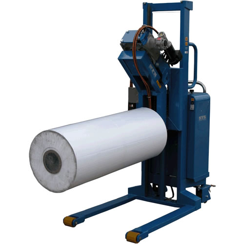 Le Gerbeur STE01 associé à l'arbre de préhension de bobine RCG02 est un équipement puissant et précis pour lever et positionner les bobines de films ou de papier.