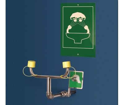 Le rince oeil 3510TI est fourni avec un panneau de signalisation pour affichage réglementaire de couleur verte (normes NF-X08-003) avec des caractères luminescents, qui rendent la position du matériel identifiable même dans le noir.