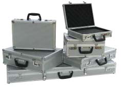 Cette série propose des mallettes de belle présentation, constituées de panneaux de bois épaisseur 4mm et recouverts de PVC coloris aluminum. Les profilés de la mallette sont en aluminium avec coins renforcés en acier chromé.