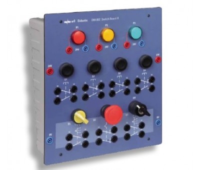 Cette plaque est un module didactique de commande manuelle en courant triphasé - tableau 24 V. Elle s'intègre dans les programmes de formation et d'apprentissage des techniques d’automatisation.