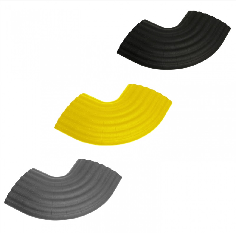 Existe en 3 coloris : gris foncé, noir et jaune.