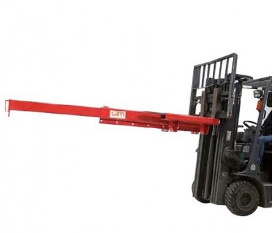 Cette potence télescopique montée sur fourches est équipée de deux crochets de levage pivotants. Les crochets sont réglables tous les 250 mm (11 positions différentes).