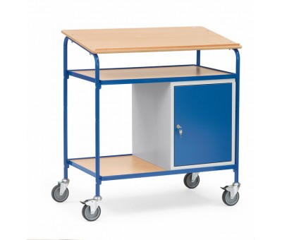 Ce pupitre roulant est un vrai poste de travail, avec un plateau d'écritoire XL, à rebord pour maintenir documents et prévenir les chutes de stylos ! Accepant une charge 100 kg, dimensions utiles 1000 x 600 mm, il est aussi équipé d'un 1 plan de pose sous l'écritoire et d'un placard verrouillable.