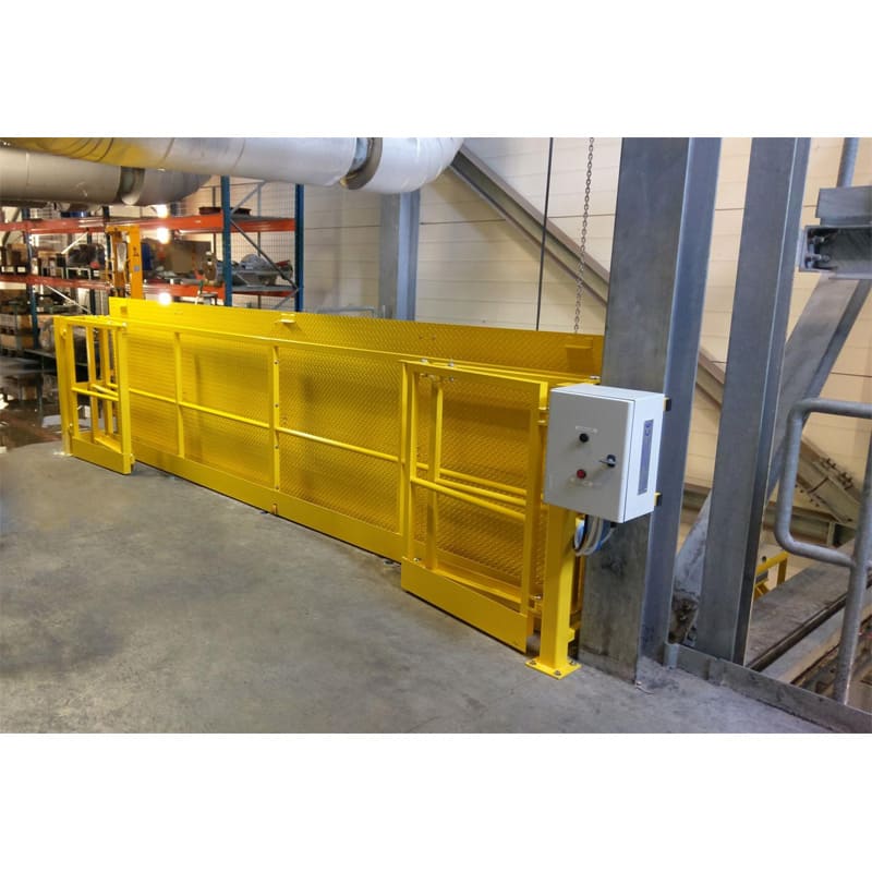 La trappe de sécurité de trémie a pour vocation d'obturer la trémie en l'absence de manutention et de s'escamoter pour permettre l'accès à un palan. Un opérateur peut donc effectuer les manutentions sans risque.
